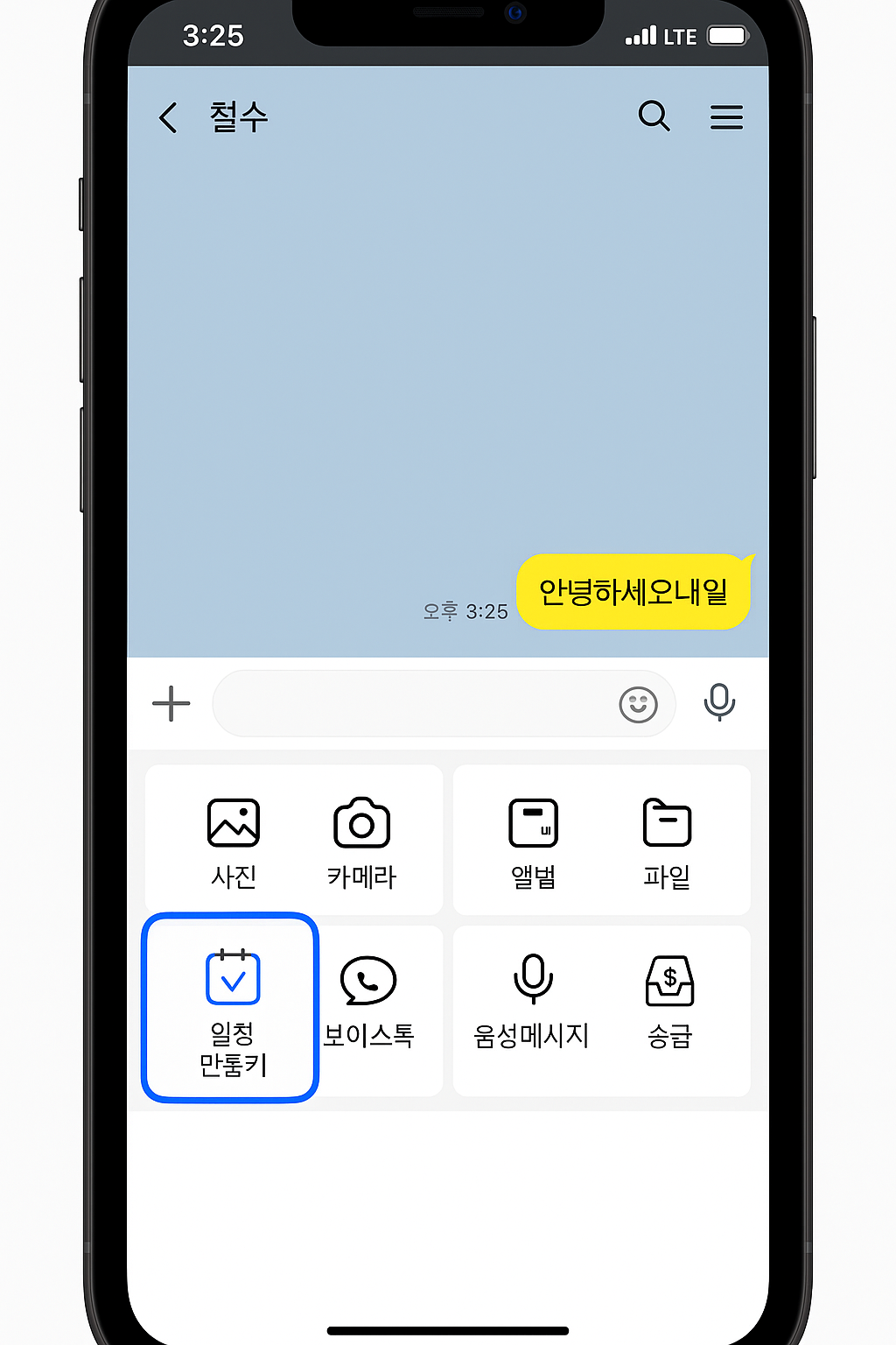 예약 전송할 개인 또는 단체 대화방을 엽니다.
